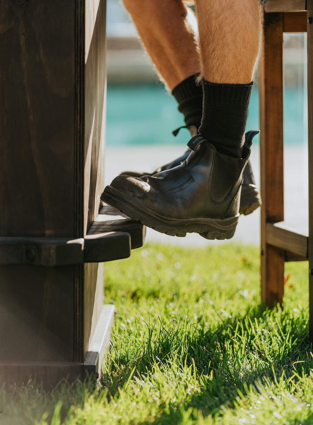 Andy’s background in shearing sheds and forestry instilled a passion for sustainable timber use. His signature creation — the Woolpress Leaner — was originally crafted by repurposing old Donalds Woolpresses, with the original manufacturer later granting him exclusive rights to their designs and history.