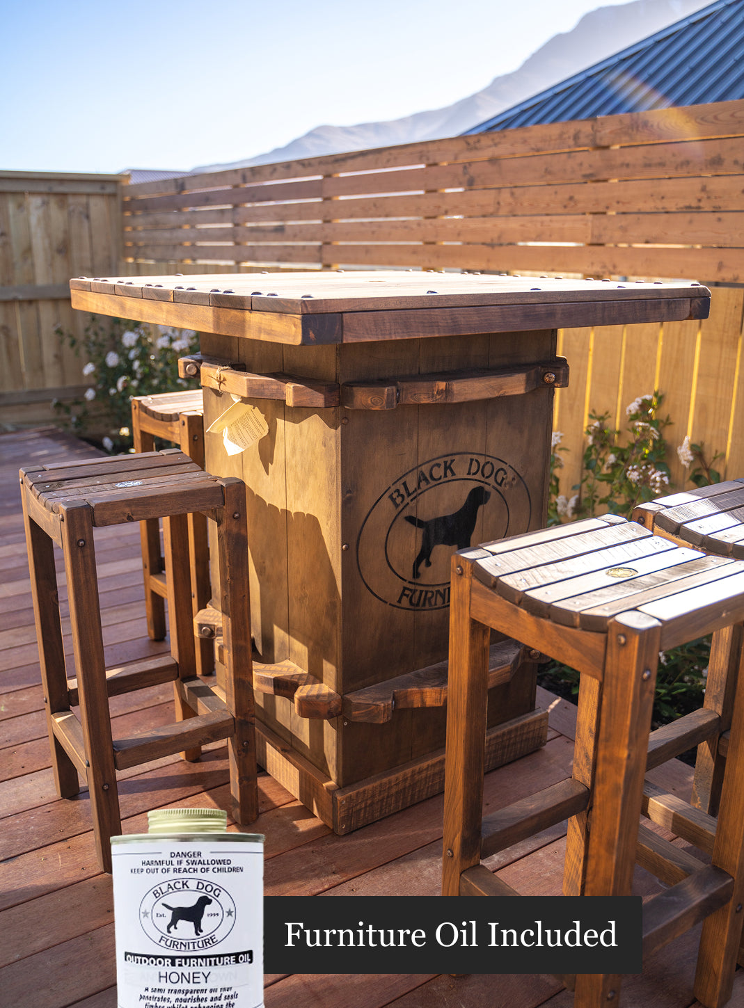 Here at Black Dog Furniture, we include 500ml. cans of our very own furniture oil with your purchase.