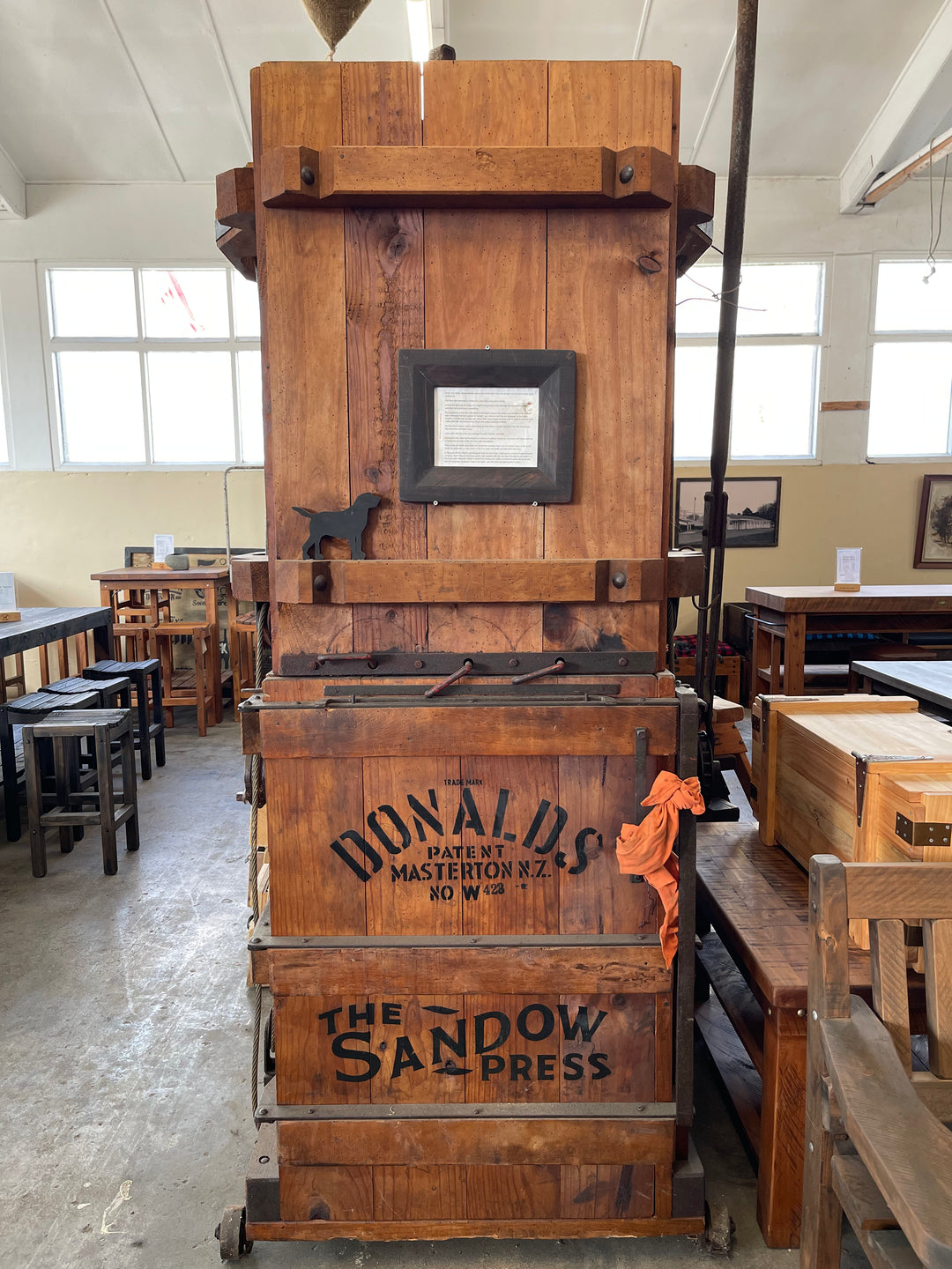 Once a staple in New Zealand shearing sheds, the Donalds Woolpress was a robust machine used for compressing and baling wool. Later reimagined by Andy of Black Dog Furniture...
